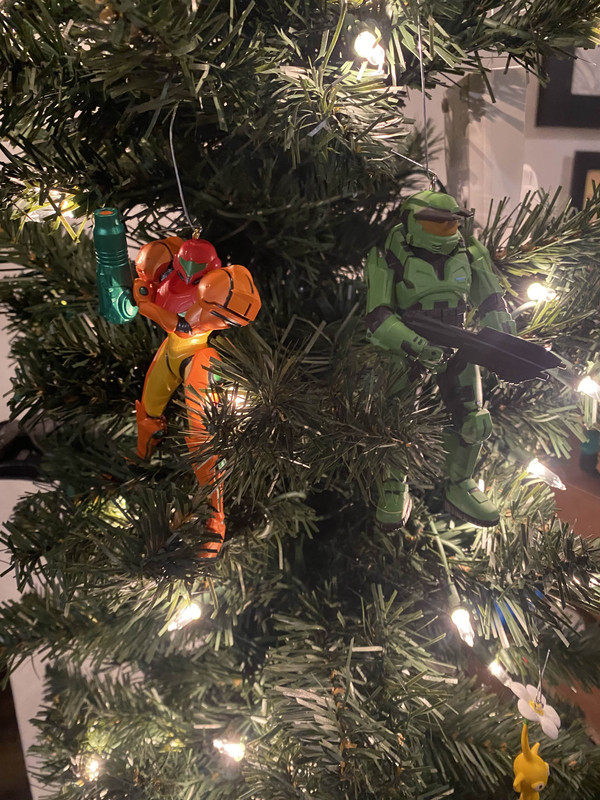 A little detail with the tree is that I put Samus and Master Chief together. They feel like they'd be the introverted cousins who find each other at family gatherings and just sit in a corner showing each other memes. Or they're the older cousins who go for a "walk" on Thanksgiving together.